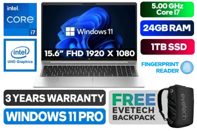 HP ProBook 450 G10 4G 13th Gen Intel® Core™ i7-1355U up to 5.00GHz Processor, 12MB Cache, 10x Cores, 12x Threads / 24GB DDR4 RAM / 1TB Ultra-Fast NVME SSD / 15.6" FHD 1920 x 1080 Anti-Glare Display / Integrated Intel UHD Graphics / <span style="font-size: 20px; color: #00BFFF; font-weight: bold;">Windows 11 Professional (64bit)</span> / Intel Wi-Fi 6E AX211 Wireless LAN + Intel XMM 7500R + LTE-APRO / Bluetooth 5.3 / 720p HD Web camera / Finger Print Reader / 2x USB Type-A / 2x USB Type-C / 1x HDMI / 1x RJ-45 / 1x Audio and Microphone Combo Jack / 1 x SIM card slot / Full Size Spill Resistant Keyboard / HP ProBook 450 G10 Intel® Core™ i7 Laptop DealHP ProBook 450 G10 4G 13th Gen Intel® Core™ i7-1355U up to 5.00GHz Processor, 12MB Cache, 10x Cores, 12x Threads / 24GB DDR4 RAM / 1TB Ultra-Fast NVME SSD / 15.6" FHD 1920 x 1080 Anti-Glare Display / Integrated Intel UHD Graphics / Windows 11 Professional (64bit) / Intel Wi-Fi 6E AX211 Wireless LAN + Intel XMM 7500R + LTE-APRO / Bluetooth 5.3 / 720p HD Web camera / Finger Print Reader / 2x USB Type-A / 2x USB Type-C / 1x HDMI / 1x RJ-45 / 1x Audio and Microphone Combo Jack / 1 x SIM card slot / Full Size Spill Resistant Keyboard / HP ProBook 450 G10 Intel® Core™ i7 Laptop Deal [968X9ET/24GB/1TB] / 3 YEARS WARRANTY / [+] GET FREE EVETECH NEO Premium Gaming Backpack+ FREE DELIVERY !