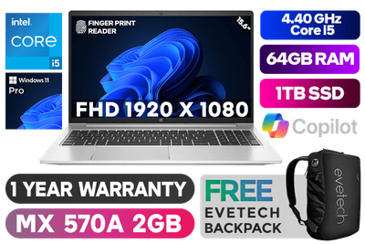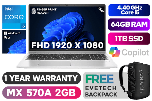 HP ProBook 450 G9 8A5B5EA 12th Gen Intel Alder Lake Core i5-1235U up to 4.40GHz Processor, 12MB Cache, 10x Cores, 12x Threads / 64GB DDR4 RAM / 1TB Ultra-Fast NVME SSD / 15.6" FHD 1920 x 1080 IPS Anti-Glare Display / NVIDIA Geforce MX570A 2GB GDDR6 DirectX 12 Dedicated Graphics Card / No DVD Drive Included / <span style="font-size: 20px; color: #00BFFF; font-weight: bold;">Windows 11 Professional (64bit)</span> / Bluetooth 5.3 / Wi-Fi 6E AX211 Wireless LAN / HD Web camera / 3x USB Type-A / 1x USB Type-C / 1x HDMI / 1x RJ-45 / Finger Print Reader / 1x Audio and Microphone Combo Jack / Full Size Spill Resistant Keyboard / 1 Year Warranty / HP ProBook 450 G9 Intel Core i5 Laptop DealHP ProBook 450 G9 8A5B5EA 12th Gen Intel Alder Lake Core i5-1235U up to 4.40GHz Processor, 12MB Cache, 10x Cores, 12x Threads / 64GB DDR4 RAM / 1TB Ultra-Fast NVME SSD / 15.6" FHD 1920 x 1080 IPS Anti-Glare Display / NVIDIA Geforce MX570A 2GB GDDR6 DirectX 12 Dedicated Graphics Card / No DVD Drive Included / Windows 11 Professional (64bit) / Bluetooth 5.3 / Wi-Fi 6E AX211 Wireless LAN / HD Web camera / 3x USB Type-A / 1x USB Type-C / 1x HDMI / 1x RJ-45 / Finger Print Reader / 1x Audio and Microphone Combo Jack / Full Size Spill Resistant Keyboard / 1 Year Warranty / HP ProBook 450 G9 Intel Core i5 Laptop Deal [8A5B5EA/64GB/1TB] / [+] GET FREE EVETECH NEO Premium Gaming Backpack+ FREE DELIVERY !
