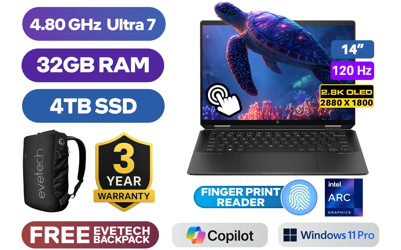 HP Spectre x360 2-in-1 Intel® Core™ Ultra 7 Touchscreen Laptop A5KS3EA with 4TB SSD