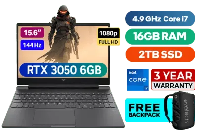 HP Victus Gaming Laptop 15-fa1012ni Intel® Core™ i7-13620H up to 4.9GHz Processor, 24MB Cache, 10x Cores, 16x Threads / 16GB DDR4 RAM / 2TB Ultra-Fast NVME SSD / 15.6" FHD 1920x1080 144Hz Anti-glare IPS-Level Display / RTX 3050 6GB GDDR6 Dedicated Graphics / Windows 11 Home 64bit / Intel Wi-Fi 6E Wireless LAN / Bluetooth 5.3 / 720p HD Camera / 2x USB Type-A / 1x USB Type-C / 1x HDMI 2.1 / 1x Headphone and Microphone Combo Jack / 1x RJ45 Ethernet LAN / 1x SD Card Reader / White Backlit Keyboard / Bang & Olufsen Dual speakers / HP Victus Intel® Core™ i7 RTX 3050 Gaming Laptop DealHP Victus Gaming Laptop 15-fa1012ni Intel® Core™ i7-13620H up to 4.9GHz Processor, 24MB Cache, 10x Cores, 16x Threads / 16GB DDR4 RAM / 2TB Ultra-Fast NVME SSD / 15.6" FHD 1920x1080 144Hz Anti-glare IPS-Level Display / RTX 3050 6GB GDDR6 Dedicated Graphics / Windows 11 Home 64bit / Intel Wi-Fi 6E Wireless LAN / Bluetooth 5.3 / 720p HD Camera / 2x USB Type-A / 1x USB Type-C / 1x HDMI 2.1 / 1x Headphone and Microphone Combo Jack / 1x RJ45 Ethernet LAN / 1x SD Card Reader / White Backlit Keyboard / Bang & Olufsen Dual speakers / HP Victus Intel® Core™ i7 RTX 3050 Gaming Laptop Deal [A19LMEA/16GB/2TB] / 3 YEARS WARRANTY / [+] GET FREE EVETECH NEO Premium Gaming Backpack+ FREE DELIVERY !