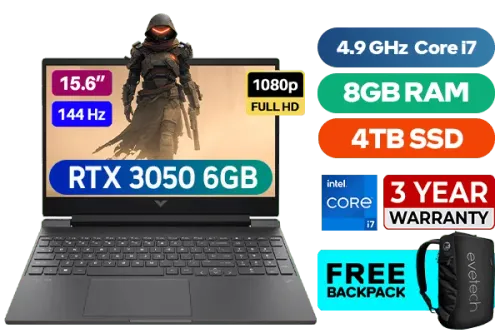 HP Victus Gaming Laptop 15-fa1012ni Intel® Core™ i7-13620H up to 4.9GHz Processor, 24MB Cache, 10x Cores, 16x Threads / 8GB DDR4 RAM / 4TB Ultra-Fast NVME SSD / 15.6" FHD 1920x1080 144Hz Anti-glare IPS-Level Display / RTX 3050 6GB GDDR6 Dedicated Graphics / Windows 11 Home 64bit / Intel Wi-Fi 6E Wireless LAN / Bluetooth 5.3 / 720p HD Camera / 2x USB Type-A / 1x USB Type-C / 1x HDMI 2.1 / 1x Headphone and Microphone Combo Jack / 1x RJ45 Ethernet LAN / 1x SD Card Reader / White Backlit Keyboard / Bang & Olufsen Dual speakers / HP Victus Intel® Core™ i7 RTX 3050 Gaming Laptop DealHP Victus Gaming Laptop 15-fa1012ni Intel® Core™ i7-13620H up to 4.9GHz Processor, 24MB Cache, 10x Cores, 16x Threads / 8GB DDR4 RAM / 4TB Ultra-Fast NVME SSD / 15.6" FHD 1920x1080 144Hz Anti-glare IPS-Level Display / RTX 3050 6GB GDDR6 Dedicated Graphics / Windows 11 Home 64bit / Intel Wi-Fi 6E Wireless LAN / Bluetooth 5.3 / 720p HD Camera / 2x USB Type-A / 1x USB Type-C / 1x HDMI 2.1 / 1x Headphone and Microphone Combo Jack / 1x RJ45 Ethernet LAN / 1x SD Card Reader / White Backlit Keyboard / Bang & Olufsen Dual speakers / HP Victus Intel® Core™ i7 RTX 3050 Gaming Laptop Deal [A19LMEA/4TB] / 3 YEARS WARRANTY / [+] GET FREE EVETECH NEO Premium Gaming Backpack+ FREE DELIVERY !