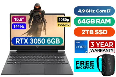 HP Victus Gaming Laptop 15-fa1012ni Intel® Core™ i7-13620H up to 4.9GHz Processor, 24MB Cache, 10x Cores, 16x Threads / 64GB DDR4 RAM / 2TB Ultra-Fast NVME SSD / 15.6" FHD 1920x1080 144Hz Anti-glare IPS-Level Display / RTX 3050 6GB GDDR6 Dedicated Graphics / Windows 11 Home 64bit / Intel Wi-Fi 6E Wireless LAN / Bluetooth 5.3 / 720p HD Camera / 2x USB Type-A / 1x USB Type-C / 1x HDMI 2.1 / 1x Headphone and Microphone Combo Jack / 1x RJ45 Ethernet LAN / 1x SD Card Reader / White Backlit Keyboard / Bang & Olufsen Dual speakers / HP Victus Intel® Core™ i7 RTX 3050 Gaming Laptop DealHP Victus Gaming Laptop 15-fa1012ni Intel® Core™ i7-13620H up to 4.9GHz Processor, 24MB Cache, 10x Cores, 16x Threads / 64GB DDR4 RAM / 2TB Ultra-Fast NVME SSD / 15.6" FHD 1920x1080 144Hz Anti-glare IPS-Level Display / RTX 3050 6GB GDDR6 Dedicated Graphics / Windows 11 Home 64bit / Intel Wi-Fi 6E Wireless LAN / Bluetooth 5.3 / 720p HD Camera / 2x USB Type-A / 1x USB Type-C / 1x HDMI 2.1 / 1x Headphone and Microphone Combo Jack / 1x RJ45 Ethernet LAN / 1x SD Card Reader / White Backlit Keyboard / Bang & Olufsen Dual speakers / HP Victus Intel® Core™ i7 RTX 3050 Gaming Laptop Deal [A19LMEA/64GB/2TB] / 3 YEARS WARRANTY / [+] GET FREE EVETECH NEO Premium Gaming Backpack+ FREE DELIVERY !