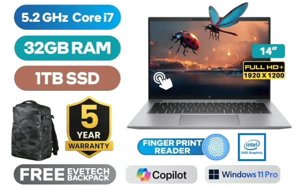 [TOUCHSCREEN] HP ZBook Firefly 14 G10 13th Gen Intel Core i7-1370P up to 5.20GHz Processor, 24MB Cache, 14x Cores, 20x Threads / 32GB DDR5 RAM / 1TB Ultra-Fast NVMe SSD / 14" FHD+ (1920x1200) Anti-Glare Display / Integrated Intel UHD Graphics / <span style="font-size: 20px; color: #00BFFF; font-weight: bold;">Windows 11 Professional (64bit)</span> / Intel Wi-Fi 6E AX211 Wireless LAN / Bluetooth 5.3 / 5MP IR Camera Shutter with Privacy Shutter / 2x USB Type-A / 2x USB Type-C (Supports Thunderbolt 4 / DisplayPort 1.4 / Power Delivery) / 1x HDMI / 1x Headphone Audio & Microphone Combo Jack / 1x Nano SIM Card Slot / 1x Smart Card Reader / Finger Print Reader / White Backlit Keyboard / 2 Stereo Speakers with Bang & Olufsen Audio / FREE HP Thunderbolt Dock 120W G4 / FREE HP Universal USB-C Multiport Hub / HP ZBook Firefly G10 Core i7 Laptop Deal[TOUCHSCREEN] HP ZBook Firefly 14 G10 13th Gen Intel Core i7-1370P up to 5.20GHz Processor, 24MB Cache, 14x Cores, 20x Threads / 32GB DDR5 RAM / 1TB Ultra-Fast NVMe SSD / 14" FHD+ (1920x1200) Anti-Glare Display / Integrated Intel UHD Graphics / Windows 11 Professional (64bit) / Intel Wi-Fi 6E AX211 Wireless LAN / Bluetooth 5.3 / 5MP IR Camera Shutter with Privacy Shutter / 2x USB Type-A / 2x USB Type-C (Supports Thunderbolt 4 / DisplayPort 1.4 / Power Delivery) / 1x HDMI / 1x Headphone Audio & Microphone Combo Jack / 1x Nano SIM Card Slot / 1x Smart Card Reader / Finger Print Reader / White Backlit Keyboard / 2 Stereo Speakers with Bang & Olufsen Audio / FREE HP Thunderbolt Dock 120W G4 / FREE HP Universal USB-C Multiport Hub / HP ZBook Firefly G10 Core i7 Laptop Deal [739P3AV/32GB] / [+] GET FREE EVETECH NEO Premium Gaming Backpack+ FREE DELIVERY !