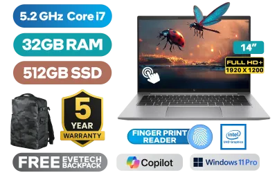[TOUCHSCREEN] HP ZBook Firefly 14 G10 13th Gen Intel Core i7-1370P up to 5.2GHz Processor, 24MB Cache, 14x Cores, 20x Threads / 32GB DDR5 RAM / 512GB Ultra-Fast NVMe SSD / 14" FHD+ (1920x1200) Anti-Glare Display / Integrated Intel UHD Graphics / <span style="font-size: 20px; color: #00BFFF; font-weight: bold;">Windows 11 Professional (64bit)</span> / Intel Wi-Fi 6E AX211 Wireless LAN / Bluetooth 5.3 / 5MP IR Camera Shutter with Privacy Shutter / 2x USB Type-A / 2x USB Type-C (Supports Thunderbolt 4 / DisplayPort 1.4 / Power Delivery) / 1x HDMI / 1x Headphone Audio & Microphone Combo Jack / 1x Nano SIM Card Slot / 1x Smart Card Reader / Finger Print Reader / White Backlit Keyboard / 2 Stereo Speakers with Bang & Olufsen Audio / FREE HP Thunderbolt Dock 120W G4 / FREE HP Universal USB-C Multiport Hub / HP ZBook Firefly G10 Core i7 Laptop Deal[TOUCHSCREEN] HP ZBook Firefly 14 G10 13th Gen Intel Core i7-1370P up to 5.2GHz Processor, 24MB Cache, 14x Cores, 20x Threads / 32GB DDR5 RAM / 512GB Ultra-Fast NVMe SSD / 14" FHD+ (1920x1200) Anti-Glare Display / Integrated Intel UHD Graphics / Windows 11 Professional (64bit) / Intel Wi-Fi 6E AX211 Wireless LAN / Bluetooth 5.3 / 5MP IR Camera Shutter with Privacy Shutter / 2x USB Type-A / 2x USB Type-C (Supports Thunderbolt 4 / DisplayPort 1.4 / Power Delivery) / 1x HDMI / 1x Headphone Audio & Microphone Combo Jack / 1x Nano SIM Card Slot / 1x Smart Card Reader / Finger Print Reader / White Backlit Keyboard / 2 Stereo Speakers with Bang & Olufsen Audio / FREE HP Thunderbolt Dock 120W G4 / FREE HP Universal USB-C Multiport Hub / HP ZBook Firefly G10 Core i7 Laptop Deal [739P3AV/32GB] / [+] GET FREE EVETECH DASH Premium Gaming Backpack+ FREE DELIVERY !