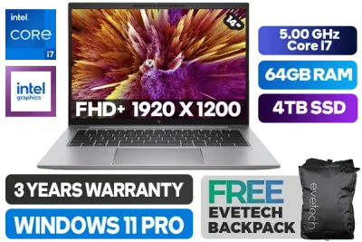 HP ZBook Firefly 14 G10 13th Gen Intel Core i7-1360P up to 5.00GHz Processor, 18MB Cache, 12x Cores, 16x Threads / 64GB DDR5 RAM / 4TB Ultra-Fast NVMe SSD / 14" FHD+ (1920 x 1200) Anti-Glare Display / Integrated Intel Graphics / <span style="font-size: 20px; color: #00BFFF; font-weight: bold;">Windows 11 Professional (64bit)</span> / Intel Wi-Fi 6E AX211 Wireless LAN / Bluetooth 5.3 / 5MP IR Camera Shutter / Dual Stereo Speakers / 1x Headphone Audio & Microphone Combo Jack / 2x SuperSpeed USB Type-A / 2x USB 4 Type-C Thunderbolt™ 4 (USB Power Delivery and DisplayPort 1.4) / 1x HDMI 2.0b / 1x Smart Card Reader / White Backlit Keyboard / HP ZBook Firefly 14 G10 Intel Core i7 Laptop DealHP ZBook Firefly 14 G10 13th Gen Intel Core i7-1360P up to 5.00GHz Processor, 18MB Cache, 12x Cores, 16x Threads / 64GB DDR5 RAM / 4TB Ultra-Fast NVMe SSD / 14" FHD+ (1920 x 1200) Anti-Glare Display / Integrated Intel Graphics / Windows 11 Professional (64bit) / Intel Wi-Fi 6E AX211 Wireless LAN / Bluetooth 5.3 / 5MP IR Camera Shutter / Dual Stereo Speakers / 1x Headphone Audio & Microphone Combo Jack / 2x SuperSpeed USB Type-A / 2x USB 4 Type-C Thunderbolt™ 4 (USB Power Delivery and DisplayPort 1.4) / 1x HDMI 2.0b / 1x Smart Card Reader / White Backlit Keyboard / HP ZBook Firefly 14 G10 Intel Core i7 Laptop Deal [865Q7EA/64GB/4TB] / 3 YEARS WARRANTY + FREE DELIVERY !