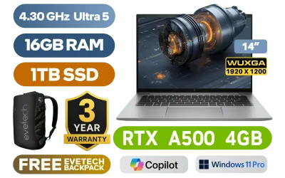 HP ZBook Firefly 14 G11 5G3Z5ES Intel® Core™ Ultra 5-125U up to 4.30GHz Processor, 12MB Cache, 12x Cores, 14x Thread / 16GB DDR5 RAM / 1TB Ultra-Fast NVMe SSD / 14" WUXGA (1920 x 1200) IPS-Level Display / NVIDIA RTX A500 4GB GDDR6 Dedicated Workstation Graphics Card / <span style="font-size: 20px; color: #00BFFF; font-weight: bold;">Windows 11 Professional (64bit)</span> / Intel Wi-Fi 6E AX211 Wireless LAN / Bluetooth 5.3 / 5MP Camera With AI Software / Finger Print Reader / Poly Studio Dual Stereo Speakers / 1x Microphone and Headphone Combo jack / 2x USB Type-A / 2x USB 4 Type-C / 1x HDMI / 1x Nano SIM slot / 1x Smart Card Reader / White Backlit Keyboard / HP ZBook Firefly 14 G11 Intel® Core™ Ultra 5 Laptop DealHP ZBook Firefly 14 G11 5G3Z5ES Intel® Core™ Ultra 5-125U up to 4.30GHz Processor, 12MB Cache, 12x Cores, 14x Thread / 16GB DDR5 RAM / 1TB Ultra-Fast NVMe SSD / 14" WUXGA (1920 x 1200) IPS-Level Display / NVIDIA RTX A500 4GB GDDR6 Dedicated Workstation Graphics Card / Windows 11 Professional (64bit) / Intel Wi-Fi 6E AX211 Wireless LAN / Bluetooth 5.3 / 5MP Camera With AI Software / Finger Print Reader / Poly Studio Dual Stereo Speakers / 1x Microphone and Headphone Combo jack / 2x USB Type-A / 2x USB 4 Type-C / 1x HDMI / 1x Nano SIM slot / 1x Smart Card Reader / White Backlit Keyboard / HP ZBook Firefly 14 G11 Intel® Core™ Ultra 5 Laptop Deal [5G3Z5ES/1TB] / 3 YEARS WARRANTY / [+] GET FREE EVETECH NEO Premium Gaming Backpack+ FREE DELIVERY !