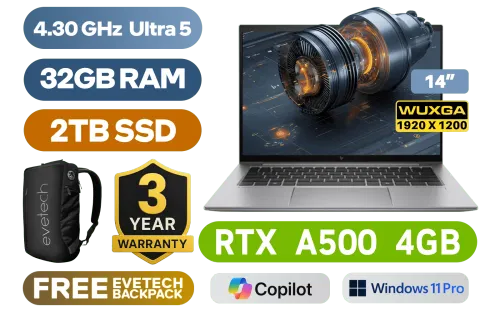 HP ZBook Firefly 14 G11 5G3Z5ES Intel® Core™ Ultra 5-125U up to 4.30GHz Processor, 12MB Cache, 12x Cores, 14x Thread / 32GB DDR5 RAM / 2TB Ultra-Fast NVMe SSD / 14" WUXGA (1920 x 1200) IPS-Level Display / NVIDIA RTX A500 4GB GDDR6 Dedicated Workstation Graphics Card / <span style="font-size: 20px; color: #00BFFF; font-weight: bold;">Windows 11 Professional (64bit)</span> / Intel Wi-Fi 6E AX211 Wireless LAN / Bluetooth 5.3 / 5MP Camera With AI Software / Finger Print Reader / Poly Studio Dual Stereo Speakers / 1x Microphone and Headphone Combo jack / 2x USB Type-A / 2x USB 4 Type-C / 1x HDMI / 1x Nano SIM slot / 1x Smart Card Reader / White Backlit Keyboard / HP ZBook Firefly 14 G11 Intel® Core™ Ultra 5 Laptop DealHP ZBook Firefly 14 G11 5G3Z5ES Intel® Core™ Ultra 5-125U up to 4.30GHz Processor, 12MB Cache, 12x Cores, 14x Thread / 32GB DDR5 RAM / 2TB Ultra-Fast NVMe SSD / 14" WUXGA (1920 x 1200) IPS-Level Display / NVIDIA RTX A500 4GB GDDR6 Dedicated Workstation Graphics Card / Windows 11 Professional (64bit) / Intel Wi-Fi 6E AX211 Wireless LAN / Bluetooth 5.3 / 5MP Camera With AI Software / Finger Print Reader / Poly Studio Dual Stereo Speakers / 1x Microphone and Headphone Combo jack / 2x USB Type-A / 2x USB 4 Type-C / 1x HDMI / 1x Nano SIM slot / 1x Smart Card Reader / White Backlit Keyboard / HP ZBook Firefly 14 G11 Intel® Core™ Ultra 5 Laptop Deal [5G3Z5ES/32GB/2TB] / 3 YEARS WARRANTY / [+] GET FREE EVETECH NEO Premium Gaming Backpack+ FREE DELIVERY !