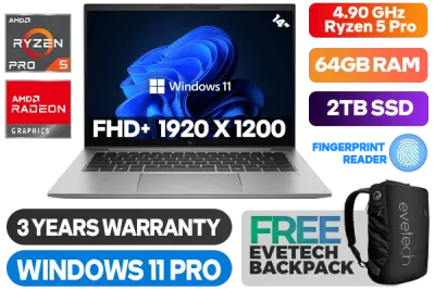 HP ZBook Firefly 14 G11 5G3Z9ES AMD Ryzen 5 Pro-8640HS up to 4.90GHz Processor, 22MB Cache, 6x Cores, 12x Thread / 64GB DDR5 RAM / 2TB Ultra-Fast NVMe SSD / 14" FHD+ (1920 x 1200) Anti-Glare Display / AMD Radeon Integrated Graphics / <span style="font-size: 20px; color: #00BFFF; font-weight: bold;">Windows 11 Professional (64bit)</span> / Intel Wi-Fi 6E AX211 Wireless LAN / Bluetooth® / 5MP Camera With AI Software / Finger Print Reader / Poly Studio Dual Stereo Speakers / 1x Headphone Audio & Microphone Combo Jack / 2x SuperSpeed USB Type-A / 2x USB 4 Type-C Thunderbolt™ 4 (support data transfer, Power Delivery 3.0 and DisplayPort™ 2.0) / 1x HDMI 2.0 / 1 x LTE-Advanced SIMCard Tray / 1x Smart Card Reader / White Backlit Keyboard / HP ZBook Firefly 14 G11 Core Ultra 5 Laptop 5G3Z9ES DealHP ZBook Firefly 14 G11 5G3Z9ES AMD Ryzen 5 Pro-8640HS up to 4.90GHz Processor, 22MB Cache, 6x Cores, 12x Thread / 64GB DDR5 RAM / 2TB Ultra-Fast NVMe SSD / 14" FHD+ (1920 x 1200) Anti-Glare Display / AMD Radeon Integrated Graphics / Windows 11 Professional (64bit) / Intel Wi-Fi 6E AX211 Wireless LAN / Bluetooth® / 5MP Camera With AI Software / Finger Print Reader / Poly Studio Dual Stereo Speakers / 1x Headphone Audio & Microphone Combo Jack / 2x SuperSpeed USB Type-A / 2x USB 4 Type-C Thunderbolt™ 4 (support data transfer, Power Delivery 3.0 and DisplayPort™ 2.0) / 1x HDMI 2.0 / 1 x LTE-Advanced SIMCard Tray / 1x Smart Card Reader / White Backlit Keyboard / HP ZBook Firefly 14 G11 Core Ultra 5 Laptop 5G3Z9ES Deal [5G3Z9ES/64GB/2TB] / 3 YEARS WARRANTY / [+] GET FREE EVETECH NEO Premium Gaming Backpack+ FREE DELIVERY !