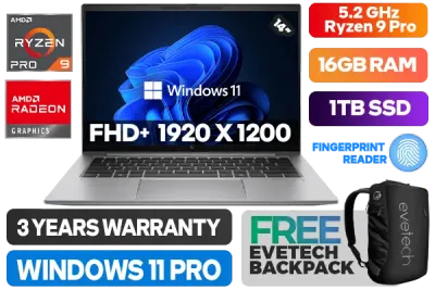 HP ZBook Firefly 14 G11A AMD Ryzen 9 Pro 8945HS up to 5.2GHz Processor, 24MB Cache, 8x Cores, 16x Threads / 16GB DDR5 RAM / 1TB Ultra-Fast NVMe SSD / 14" FHD+ (1920 x 1200) Anti-Glare Display / AMD Radeon 780M Integrated Graphics / <span style="font-size: 20px; color: #00BFFF; font-weight: bold;">Windows 11 Professional (64bit)</span> / MediaTek Wi-Fi 6E MT7922 Wireless LAN / Bluetooth 5.3 / 5MP Camera With Privacy Shutter / Finger Print Reader / 2x USB Type-A / 2x USB Type-C Thunderbolt 4 (DisplayPort™ 1.4) / 1x HDMI / 1x Audio and Microphone Combo Jack / 1x Sim Card Bay / 1x Smart Card Reader / White Backlit Spill-Resistant Keyboard / Poly Studio Dual Stereo speakers / HP ZBook Firefly 14 G11A Ryzen 9 Laptop DealHP ZBook Firefly 14 G11A AMD Ryzen 9 Pro 8945HS up to 5.2GHz Processor, 24MB Cache, 8x Cores, 16x Threads / 16GB DDR5 RAM / 1TB Ultra-Fast NVMe SSD / 14" FHD+ (1920 x 1200) Anti-Glare Display / AMD Radeon 780M Integrated Graphics / Windows 11 Professional (64bit) / MediaTek Wi-Fi 6E MT7922 Wireless LAN / Bluetooth 5.3 / 5MP Camera With Privacy Shutter / Finger Print Reader / 2x USB Type-A / 2x USB Type-C Thunderbolt 4 (DisplayPort™ 1.4) / 1x HDMI / 1x Audio and Microphone Combo Jack / 1x Sim Card Bay / 1x Smart Card Reader / White Backlit Spill-Resistant Keyboard / Poly Studio Dual Stereo speakers / HP ZBook Firefly 14 G11A Ryzen 9 Laptop Deal [5G401ES/1TB] / 3 YEARS WARRANTY / [+] GET FREE EVETECH NEO Premium Gaming Backpack+ FREE DELIVERY !