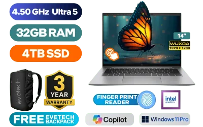 [Touchscreen] HP ZBook Firefly G11 B2ZY1ES Intel Core Ultra 5 125H up to 4.50GHz Processor, 18MB Cache, 14x Cores, 18x Threads / 32GB DDR5 RAM / 4TB Ultra-Fast NVMe SSD / 14" WUXGA (1920 x 1200) Anti-Glare IPS-Level Touchscreen Anti-Glare Display / Integrated Intel Graphics / <span style="font-size: 20px; color: #00BFFF; font-weight: bold;">Windows 11 Professional(64-bit)</span> / Intel AX211 Wi-Fi 6E Wireless LAN / Bluetooth 5.3 / 5MP IR Camera / 2x USB Type-A / 2x USB Type-C (Thunderbolt 4) / 1x HDMI 2.1 / 1x Headphone & Microphone Combo Jack / 1x SIM Card Tray / 1x Micro SD Card Tray / Non-Backlit Keyboard / Fingerprint Reader / HP ZBook Firefly G11 B2ZY1ES Intel Core Ultra 5 Laptop Deal[Touchscreen] HP ZBook Firefly G11 B2ZY1ES Intel Core Ultra 5 125H up to 4.50GHz Processor, 18MB Cache, 14x Cores, 18x Threads / 32GB DDR5 RAM / 4TB Ultra-Fast NVMe SSD / 14" WUXGA (1920 x 1200) Anti-Glare IPS-Level Touchscreen Anti-Glare Display / Integrated Intel Graphics / Windows 11 Professional(64-bit) / Intel AX211 Wi-Fi 6E Wireless LAN / Bluetooth 5.3 / 5MP IR Camera / 2x USB Type-A / 2x USB Type-C (Thunderbolt 4) / 1x HDMI 2.1 / 1x Headphone & Microphone Combo Jack / 1x SIM Card Tray / 1x Micro SD Card Tray / Non-Backlit Keyboard / Fingerprint Reader / HP ZBook Firefly G11 B2ZY1ES Intel Core Ultra 5 Laptop Deal [B2ZY1ES/32GB/4TB] / [+] GET FREE EVETECH NEO Premium Gaming Backpack / 3 YEARS WARRANTY + FREE DELIVERY !
