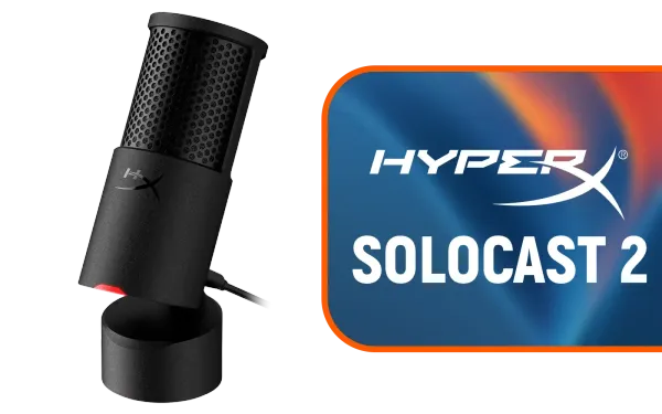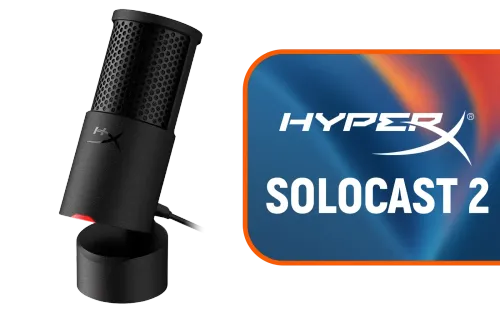 HyperX SoloCast 2 Microphone - Black / Built-In Shock Mount Suspension System / All-In-One Design With Pop Filter & Stand / Tilt-Adjustable Stable Base With Mounting Threads / Tap-To-Mute With LED Indicator / Plug-And-Play USB-C Connectivity / AR0A0AA + FREE DELIVERY !