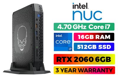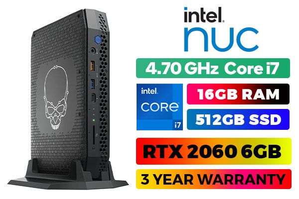 Intel NUC 11 Enthusiast Mini PC Kit - NUC11PHKi7C Intel 11th Gen Core i7 Mini PC Kit / 11th Generation Core i7-1165G7 Turbo up to 4.70GHz Processor / NVIDIA GeForce RTX 2060 6GB GDDR6 Dedicated Graphics / Wi-Fi 6 AX201 Wireless LAN / Bluetooth / 1x HDMI / Intel Gigabit LAN / 6 x USB Type-A / 2 x USB Type-C (Thunderbolt) / 1x Mini DisplayPort / SD Card Slot / 1x Audio Combo Jack / No OS Included / 16GB DDR4 Memory / 512GB Ultra-fast SSD / NUC11PHBi7/16GB/512GB / NUC11PHBi7/16GB/512GB + FREE DELIVERY !
