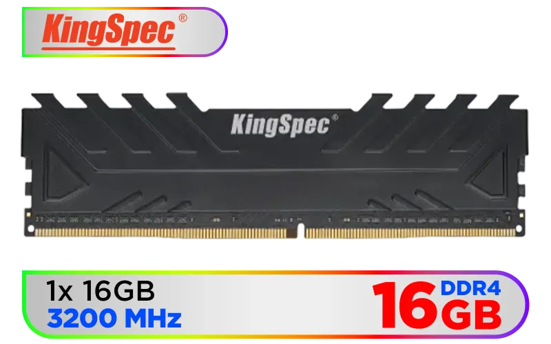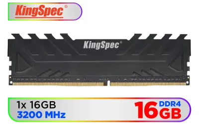 KingSpec 16GB (16x1) 3200mhz DDR4 Desktop Memory - Black / Premium 3D NAND Flash Memory / 1.2V Power-Saving Technology / Hollow Structure Metal Heatsink / KS3200D4M13516G