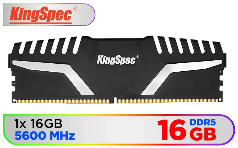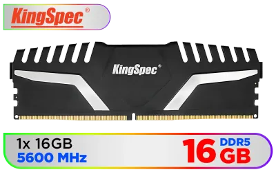 KingSpec KS5600D5M13516G 16GB (16x1) 5600mhz DDR5 Desktop Memory - Black / 3D Hollow & Breathable Heatsink Design / Single Rank 288-Pin UDIMM DDR5 / KS5600D5M12516G