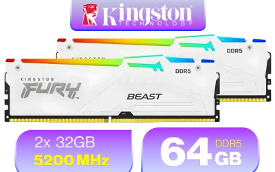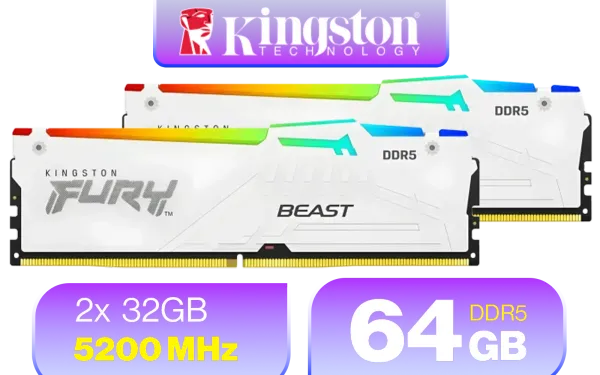 Kingston Fury Beast 64GB 5200MHz DDR5 CL36 Memory white