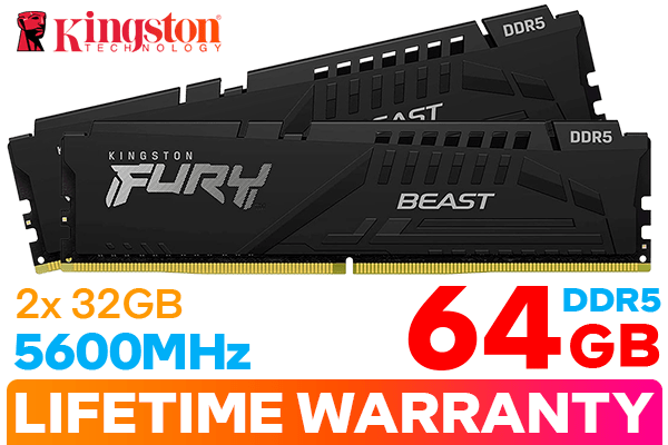 Kingston Fury Beast 64GB 5600MHz DDR5 CL40 Memory