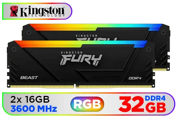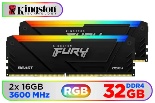 Kingston FURY Beast RGB 32GB DDR4 3600MTs Black