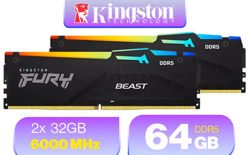 Kingston Fury Beast RGB 64GB (2x32GB) 6000MT/s DDR5 CL36 Des