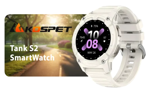 KOSPET Tank S2 White Smart Watch for Women GPS, 5ATM Waterpr