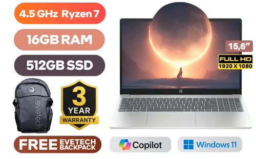 HP Laptop 15-fc0000ni AMD Ryzen 7 7730U up to 4.5GHz Processor with AMD Max Boost Clock Technology, 20MB Cache, 8x Cores, 16x Threads / 16GB DDR4 RAM / 512GB Ultra-Fast NVME SSD / 15.6" FHD 1920 x 1080 Anti-Glare Display / Integrated AMD Radeon™ Graphics / Windows 11 Home 64bit / Realtek RTL8852BE-VS WiFi 6 Wireless LAN / Bluetooth 5.3 / 1 x USB Type C / 2 x USB Type-A / 1 x HDMI / 1x Headphone And Microphone Combo Jack / HP True Vision 720p HD camera with integrated dual array digital microphones / Full-size Soft Grey Keyboard with Numeric Keypad / HP 15-fc0000ni Ryzen 7 LaptopHP Laptop 15-fc0000ni AMD Ryzen 7 7730U up to 4.5GHz Processor with AMD Max Boost Clock Technology, 20MB Cache, 8x Cores, 16x Threads / 16GB DDR4 RAM / 512GB Ultra-Fast NVME SSD / 15.6" FHD 1920 x 1080 Anti-Glare Display / Integrated AMD Radeon™ Graphics / Windows 11 Home 64bit / Realtek RTL8852BE-VS WiFi 6 Wireless LAN / Bluetooth 5.3 / 1 x USB Type C / 2 x USB Type-A / 1 x HDMI / 1x Headphone And Microphone Combo Jack / HP True Vision 720p HD camera with integrated dual array digital microphones / Full-size Soft Grey Keyboard with Numeric Keypad / HP 15-fc0000ni Ryzen 7 Laptop [9J3C1EA] / 3 YEARS WARRANTY / [+] GET FREE EVETECH DASH Premium Gaming Backpack+ FREE DELIVERY !
