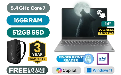[TOUCHSCREEN] Lenovo IdeaPad 5 2-in-1 14IRH9 Intel® Core™ 7-150U up to 5.4GHz Processor, 12MB Cache, 10x Cores, 12x Threads / 16GB LPDDR5X RAM / 512GB Ultra-Fast NVME SSD / 14" WUXGA (1920 x 1200) IPS-Level Touchscreen Display / Integrated Intel Graphics / Windows 11 Home (64bit) / 1080p FHD Camera with Privacy Shutter / Bluetooth 5.3 / Intel Wi-Fi 6 AX211 Wireless LAN / Fingerprint Reader / 2x 2W Speaker With Dolby Audio / Headphone Audio & Microphone Combo Jack / 2x USB Type-A / 2x USB Type-C / 1x HDMI / 1x microSD Card Reader / White Backlit keyboard / Lenovo® Digital Pen 2 / Lenovo IdeaPad 5 2-in-1 14IRH9 Core 7 Touchscreen Laptop Deal[TOUCHSCREEN] Lenovo IdeaPad 5 2-in-1 14IRH9 Intel® Core™ 7-150U up to 5.4GHz Processor, 12MB Cache, 10x Cores, 12x Threads / 16GB LPDDR5X RAM / 512GB Ultra-Fast NVME SSD / 14" WUXGA (1920 x 1200) IPS-Level Touchscreen Display / Integrated Intel Graphics / Windows 11 Home (64bit) / 1080p FHD Camera with Privacy Shutter / Bluetooth 5.3 / Intel Wi-Fi 6 AX211 Wireless LAN / Fingerprint Reader / 2x 2W Speaker With Dolby Audio / Headphone Audio & Microphone Combo Jack / 2x USB Type-A / 2x USB Type-C / 1x HDMI / 1x microSD Card Reader / White Backlit keyboard / Lenovo® Digital Pen 2 / Lenovo IdeaPad 5 2-in-1 14IRH9 Core 7 Touchscreen Laptop Deal [83DT0050SA] / [+] GET FREE EVETECH NEO Premium Gaming Backpack / 3 YEARS WARRANTY + FREE DELIVERY !