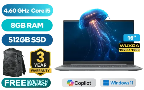 Lenovo IdeaPad Slim 3 16IRH10 13th Gen Intel® Core™ i5-13420H up to 4.60GHz Processor, 12MB Cache, 8x Cores, 12x Threads / 8GB DDR5 RAM / 512GB Ultra-Fast NVMe SSD / 16" WUXGA (1920 x 1200) IPS-Level Display / Integrated Intel UHD Graphics / Windows 11 Home (64bit) / HD 720p Camera with Privacy Shutter / Intel Wifi 6 AX203 Wireless LAN / Bluetooth 5.2 / 2x USB Type-A / 1x USB Type-C / 1x HDMI / 1x SD Card Reader / 1x Headphone Audio & Microphone Combo Jack / 2x 2W Speaker optimized with Dolby® Audio / Non Backlit Keyboard / Lenovo IdeaPad Slim 3 16IRH10 Core i5 Laptop DealLenovo IdeaPad Slim 3 16IRH10 13th Gen Intel® Core™ i5-13420H up to 4.60GHz Processor, 12MB Cache, 8x Cores, 12x Threads / 8GB DDR5 RAM / 512GB Ultra-Fast NVMe SSD / 16" WUXGA (1920 x 1200) IPS-Level Display / Integrated Intel UHD Graphics / Windows 11 Home (64bit) / HD 720p Camera with Privacy Shutter / Intel Wifi 6 AX203 Wireless LAN / Bluetooth 5.2 / 2x USB Type-A / 1x USB Type-C / 1x HDMI / 1x SD Card Reader / 1x Headphone Audio & Microphone Combo Jack / 2x 2W Speaker optimized with Dolby® Audio / Non Backlit Keyboard / Lenovo IdeaPad Slim 3 16IRH10 Core i5 Laptop Deal [83K2004HSA] / 3 YEARS WARRANTY / [+] GET FREE EVETECH DASH Premium Gaming Backpack+ FREE DELIVERY !