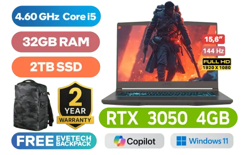 MSI THIN 15 B13UC 13th Gen Intel® Core™ i5-13420H up to 4.60GHz Processor, 12MB Cache, 8x Cores, 12x Threads / 32GB DDR4 RAM / 2TB Ultra-Fast NVMe SSD / 15.6" FHD (1920x1080) 144Hz, Anti-Glare IPS Level Display / NVIDIA GeForce RTX 3050 4GB GDDR6 Graphics / Windows 11 Home 64bit / 720P HD Web Camera / Intel Wi-Fi 6E AX211 Wireless LAN / Bluetooth 5.3 / Blue Backlit Gaming Keyboard / 3 x USB Type-A / 1 x USB Type-C / 1 x HDMI / 1x RJ-45 Ethernet LAN / 1x Headphone & 1x Microphone Audio Jack / 2 x 2W Speaker / 2 Years Warranty / MSI THIN 15 B13UC 13th Gen Intel® Core™ i5 RTX 3050 Gaming Laptop DealMSI THIN 15 B13UC 13th Gen Intel® Core™ i5-13420H up to 4.60GHz Processor, 12MB Cache, 8x Cores, 12x Threads / 32GB DDR4 RAM / 2TB Ultra-Fast NVMe SSD / 15.6" FHD (1920x1080) 144Hz, Anti-Glare IPS Level Display / NVIDIA GeForce RTX 3050 4GB GDDR6 Graphics / Windows 11 Home 64bit / 720P HD Web Camera / Intel Wi-Fi 6E AX211 Wireless LAN / Bluetooth 5.3 / Blue Backlit Gaming Keyboard / 3 x USB Type-A / 1 x USB Type-C / 1 x HDMI / 1x RJ-45 Ethernet LAN / 1x Headphone & 1x Microphone Audio Jack / 2 x 2W Speaker / 2 Years Warranty / MSI THIN 15 B13UC 13th Gen Intel® Core™ i5 RTX 3050 Gaming Laptop Deal [THIN-15-B13UC-3069ZA/32GB/2TB] / [+] GET FREE EVETECH DASH Premium Gaming Backpack+ FREE DELIVERY !