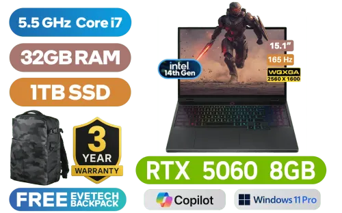 Lenovo Legion 5 15IRX10H 14th Gen Intel® Core™ i7-14700HX up to 5.5GHz Processor, 33MB Cache, 20x Cores, 28x Threads / 32GB DDR5 RAM / 1TB Ultra-Fast NVMe SSD / 15.1" WQXGA (2560x1600) 165Hz, OLED Display / NVIDIA 50 Series GeForce RTX 5060 8GB GDDR7 Dedicated Graphics / 5.0MP Web Camera with E-shutter / <span style="font-size: 20px; color: #00BFFF; font-weight: bold;">Windows 11 Professional (64bit)</span> / Realtek 8922AE WI-FI 7 Wireless LAN / Bluetooth 5.4 / 3 x USB Type-A / 2x USB-C (DisplayPort™) / 1 x HDMI 2.1 / 1x Headphone and Microphone Combo Jack / 1 x RJ45 / RGB Backlit Keyboard / 2x 2W Speaker with HARMAN Audio / Lenovo Legion 5 15IRX10H Intel® Core™ i7 RTX 5060 Gaming Laptop DealLenovo Legion 5 15IRX10H 14th Gen Intel® Core™ i7-14700HX up to 5.5GHz Processor, 33MB Cache, 20x Cores, 28x Threads / 32GB DDR5 RAM / 1TB Ultra-Fast NVMe SSD / 15.1" WQXGA (2560x1600) 165Hz, OLED Display / NVIDIA 50 Series GeForce RTX 5060 8GB GDDR7 Dedicated Graphics / 5.0MP Web Camera with E-shutter / Windows 11 Professional (64bit) / Realtek 8922AE WI-FI 7 Wireless LAN / Bluetooth 5.4 / 3 x USB Type-A / 2x USB-C (DisplayPort™) / 1 x HDMI 2.1 / 1x Headphone and Microphone Combo Jack / 1 x RJ45 / RGB Backlit Keyboard / 2x 2W Speaker with HARMAN Audio / Lenovo Legion 5 15IRX10H Intel® Core™ i7 RTX 5060 Gaming Laptop Deal [83LY002KSA] / 3 YEARS WARRANTY / [+] GET FREE EVETECH DASH Premium Gaming Backpack+ FREE DELIVERY !