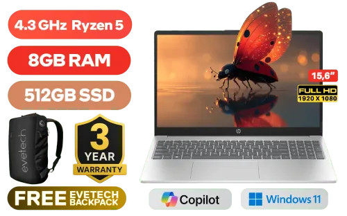 HP 15-fc0057ni AMD Ryzen 5 7520U up to 4.3GHz Processor, 6MB Cache, 4x Cores, 8x Threads / 8GB LPDDR5 RAM / 512GB Ultra-Fast NVME SSD / 15.6" FHD (1920 x 1080) Anti-Glare Display / Integrated AMD Radeon™ Graphics / Windows 11 Home 64bit / Realtek RTL8852BE-VT WiFi 6 Wireless LAN / Bluetooth 5.4 / 720p HP Web Camera / 2 x USB Type-A / 1 x USB Type-C / 1 x HDMI / 1x Headphone And Microphone Combo Jack / Full-size Keyboard / Dual Speakers / HP 15-fc0057ni Ryzen 5 Laptop DealHP 15-fc0057ni AMD Ryzen 5 7520U up to 4.3GHz Processor, 6MB Cache, 4x Cores, 8x Threads / 8GB LPDDR5 RAM / 512GB Ultra-Fast NVME SSD / 15.6" FHD (1920 x 1080) Anti-Glare Display / Integrated AMD Radeon™ Graphics / Windows 11 Home 64bit / Realtek RTL8852BE-VT WiFi 6 Wireless LAN / Bluetooth 5.4 / 720p HP Web Camera / 2 x USB Type-A / 1 x USB Type-C / 1 x HDMI / 1x Headphone And Microphone Combo Jack / Full-size Keyboard / Dual Speakers / HP 15-fc0057ni Ryzen 5 Laptop Deal [C29PMEA] / 3 YEARS WARRANTY / [+] GET FREE EVETECH DASH Premium Gaming Backpack+ FREE DELIVERY !