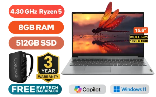 LENOVO IDEAPAD 1 15AMN7 AMD Ryzen 5 7520U up to 4.30GHz Processor, 6MB Cache, 4x Cores, 8x Threads / 8GB LPDDR5 RAM / 512GB Ultra-Fast NVME SSD / 15.6" FHD (1920x1080) Anti-glare Display / Integrated AMD Radeon Graphics / Windows 11 Home / WiFi 6 Wireless LAN / Bluetooth 5.2 / HD 720p Web Camera with Privacy Shutter / 2x USB Type-A / 1x USB Type-C / 1x HDMI / 1x Headphone & microphone combo jack / 1x SD Card reader / Non-backlit English Keyboard / Stereo Speakers with Dolby Audio / Lenovo IdeaPad 1 15AMN7 AMD Ryzen 5 Laptop DealLENOVO IDEAPAD 1 15AMN7 AMD Ryzen 5 7520U up to 4.30GHz Processor, 6MB Cache, 4x Cores, 8x Threads / 8GB LPDDR5 RAM / 512GB Ultra-Fast NVME SSD / 15.6" FHD (1920x1080) Anti-glare Display / Integrated AMD Radeon Graphics / Windows 11 Home / WiFi 6 Wireless LAN / Bluetooth 5.2 / HD 720p Web Camera with Privacy Shutter / 2x USB Type-A / 1x USB Type-C / 1x HDMI / 1x Headphone & microphone combo jack / 1x SD Card reader / Non-backlit English Keyboard / Stereo Speakers with Dolby Audio / Lenovo IdeaPad 1 15AMN7 AMD Ryzen 5 Laptop Deal [82VG00X2SA] / 3 YEARS WARRANTY / [+] GET FREE EVETECH DASH Premium Gaming Backpack+ FREE DELIVERY !