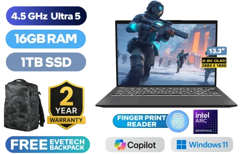 MSI Prestige 13 AI Evo A1MG Intel Core Ultra 5-125H Up to 4.5GHz Processor, 18MB Cache, 14x Cores, 18x Threads / 16GB LPDDR5X RAM / 1TB Ultra-Fast NVMe SSD / 13.3" 2.8K (2880x1800) OLED Display / Integrated Intel Arc Graphics / Windows 11 Home (64bit) / Intel Killer BE Wi-Fi 7 BE1750w Wireless LAN / Bluetooth 5.4 / FHD IR Web Camera / 1x Type-A / 2x USB Type-C (Thunderbolt 4 / DisplayPort / Power Delivery) / 1x HDMI / 1x Headphone & Microphone Combo Jack / 1x Micro SD Card Reader / Fingerprint Sensor / White Backlit Keyboard / MSI Prestige 13 AI Evo A1MG Core Ultra 5 Laptop DealMSI Prestige 13 AI Evo A1MG Intel Core Ultra 5-125H Up to 4.5GHz Processor, 18MB Cache, 14x Cores, 18x Threads / 16GB LPDDR5X RAM / 1TB Ultra-Fast NVMe SSD / 13.3" 2.8K (2880x1800) OLED Display / Integrated Intel Arc Graphics / Windows 11 Home (64bit) / Intel Killer BE Wi-Fi 7 BE1750w Wireless LAN / Bluetooth 5.4 / FHD IR Web Camera / 1x Type-A / 2x USB Type-C (Thunderbolt 4 / DisplayPort / Power Delivery) / 1x HDMI / 1x Headphone & Microphone Combo Jack / 1x Micro SD Card Reader / Fingerprint Sensor / White Backlit Keyboard / MSI Prestige 13 AI Evo A1MG Core Ultra 5 Laptop Deal [Prestige-13 AI+ Evo-A1MG-276ZA/1TB] / [+] GET FREE EVETECH DASH Premium Gaming Backpack+ FREE DELIVERY !