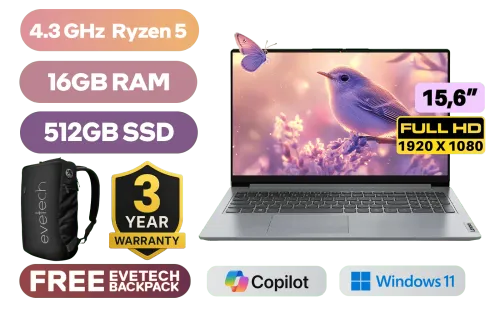 Lenovo IdeaPad 1 15ALC7 AMD Ryzen 5 5625U up to 4.3GHz Processor with AMD Max Boost Clock Technology, 16MB Cache, 6x Cores, 12x Threads / 16GB DDR4 RAM / 512GB Ultra-Fast NVME SSD / 15.6" FHD 1920 x 1080 Anti-Glare Display / Integrated AMD Radeon Graphics / Windows 11 Home (64bit) / HD 720p Webcam / MediaTek Wi-Fi 6 MT7921 LAN / Bluetooth 5.2 / 2x USB Type-A / 1x USB Type-C / 1x HDMI / 1x Headphone Audio & Microphone Combo Jack / 1x SD Card Reader / 2x 1.5W Speaker With Dolby Audio / Non Backlit Keyboard / Lenovo IdeaPad 1 15ALC7 Ryzen 5 Laptop DealLenovo IdeaPad 1 15ALC7 AMD Ryzen 5 5625U up to 4.3GHz Processor with AMD Max Boost Clock Technology, 16MB Cache, 6x Cores, 12x Threads / 16GB DDR4 RAM / 512GB Ultra-Fast NVME SSD / 15.6" FHD 1920 x 1080 Anti-Glare Display / Integrated AMD Radeon Graphics / Windows 11 Home (64bit) / HD 720p Webcam / MediaTek Wi-Fi 6 MT7921 LAN / Bluetooth 5.2 / 2x USB Type-A / 1x USB Type-C / 1x HDMI / 1x Headphone Audio & Microphone Combo Jack / 1x SD Card Reader / 2x 1.5W Speaker With Dolby Audio / Non Backlit Keyboard / Lenovo IdeaPad 1 15ALC7 Ryzen 5 Laptop Deal [82R400WYFU/16GB] / 3 YEARS WARRANTY / [+] GET FREE EVETECH NEO Premium Gaming Backpack+ FREE DELIVERY !