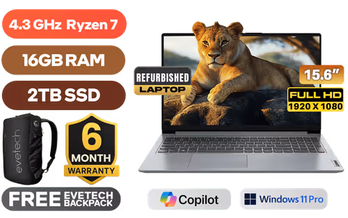 [Refurbished] Lenovo IdeaPad 1 15ALC7 AMD Ryzen 7-5700U up to 4.3GHz Processor, 12MB Cache, 8x Cores, 16x Threads / 16GB DDR4 RAM / 2TB Ultra-Fast NVME SSD / 15.6" FHD (1920x1080) Anti-Glare Display / Integrated AMD Radeon Graphics / <span style="font-size: 20px; color: #00BFFF; font-weight: bold;">Windows 11 Professional (64bit)</span> / 720p HD Camera with Privacy Shutter/ MediaTek Wi-Fi 6 MT7921 LAN / Bluetooth 5.2 / 2x USB Type-A / 1x USB Type-C / 1x HDMI / 1x SD Card Reader / 1x Headphone & Microphone Combo Jack / 2x Stereo Speakers With Dolby Audio / Non-Backlit Keyboard / 6 Month Warranty / Lenovo IdeaPad 1 15ALC7 Ryzen 7 Laptop Deal[Refurbished] Lenovo IdeaPad 1 15ALC7 AMD Ryzen 7-5700U up to 4.3GHz Processor, 12MB Cache, 8x Cores, 16x Threads / 16GB DDR4 RAM / 2TB Ultra-Fast NVME SSD / 15.6" FHD (1920x1080) Anti-Glare Display / Integrated AMD Radeon Graphics / Windows 11 Professional (64bit) / 720p HD Camera with Privacy Shutter/ MediaTek Wi-Fi 6 MT7921 LAN / Bluetooth 5.2 / 2x USB Type-A / 1x USB Type-C / 1x HDMI / 1x SD Card Reader / 1x Headphone & Microphone Combo Jack / 2x Stereo Speakers With Dolby Audio / Non-Backlit Keyboard / 6 Month Warranty / Lenovo IdeaPad 1 15ALC7 Ryzen 7 Laptop Deal [REFURB-82R400N2FU/16GB/2TB] / [+] GET FREE EVETECH NEO Premium Gaming Backpack+ FREE DELIVERY !