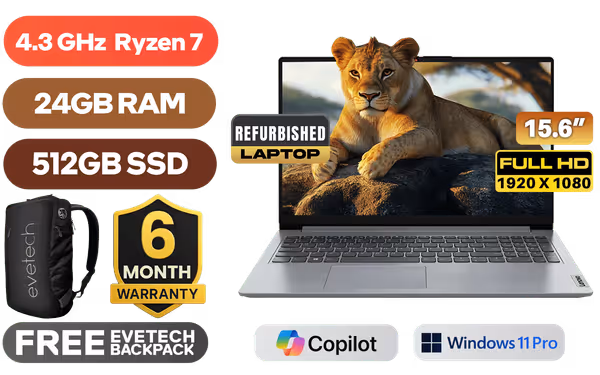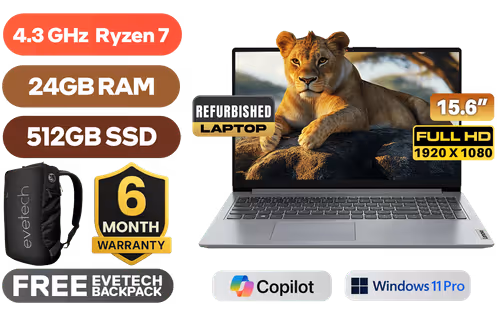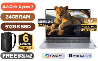 [Refurbished] Lenovo IdeaPad 1 15ALC7 AMD Ryzen 7-5700U up to 4.3GHz Processor, 12MB Cache, 8x Cores, 16x Threads / 24GB DDR4 RAM / 512GB Ultra-Fast NVME SSD / 15.6" FHD (1920x1080) Anti-Glare Display / Integrated AMD Radeon Graphics / <span style="font-size: 20px; color: #00BFFF; font-weight: bold;">Windows 11 Professional (64bit)</span> / 720p HD Camera with Privacy Shutter/ MediaTek Wi-Fi 6 MT7921 LAN / Bluetooth 5.2 / 2x USB Type-A / 1x USB Type-C / 1x HDMI / 1x SD Card Reader / 1x Headphone & Microphone Combo Jack / 2x Stereo Speakers With Dolby Audio / Non-Backlit Keyboard / 6 Month Warranty / Lenovo IdeaPad 1 15ALC7 Ryzen 7 Laptop Deal[Refurbished] Lenovo IdeaPad 1 15ALC7 AMD Ryzen 7-5700U up to 4.3GHz Processor, 12MB Cache, 8x Cores, 16x Threads / 24GB DDR4 RAM / 512GB Ultra-Fast NVME SSD / 15.6" FHD (1920x1080) Anti-Glare Display / Integrated AMD Radeon Graphics / Windows 11 Professional (64bit) / 720p HD Camera with Privacy Shutter/ MediaTek Wi-Fi 6 MT7921 LAN / Bluetooth 5.2 / 2x USB Type-A / 1x USB Type-C / 1x HDMI / 1x SD Card Reader / 1x Headphone & Microphone Combo Jack / 2x Stereo Speakers With Dolby Audio / Non-Backlit Keyboard / 6 Month Warranty / Lenovo IdeaPad 1 15ALC7 Ryzen 7 Laptop Deal [REFURB-82R400N2FU/24GB] / [+] GET FREE EVETECH NEO Premium Gaming Backpack+ FREE DELIVERY !