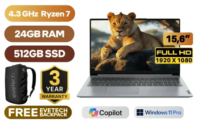 Lenovo IdeaPad 1 15ALC7 AMD Ryzen 7 5700U up to 4.3GHz Processor with AMD Max Boost Clock Technology, 12MB Cache, 8x Cores, 16x Threads / 24GB DDR4 RAM / 512GB Ultra-Fast NVME SSD / 15.6" FHD 1920 x 1080 Anti-Glare Display / Integrated AMD Radeon Graphics / No DVD Drive Included / <span style="font-size: 20px; color: #00BFFF; font-weight: bold;">Windows 11 Professional (64bit)</span> / HD 720p with Privacy Shutter Microphone / MediaTek Wi-Fi 6 MT7921 LAN / Bluetooth 5.2 / 2x USB Type-A / 1x USB Type-C / 1x HDMI / 1x SD Card Reader / 1x Headphone Audio & Microphone Combo Jack / 2x 1.5W Speaker With Dolby Audio / Non-Backlit Keyboard / Lenovo IdeaPad 1 15ALC7 Ryzen 7 Laptop DealLenovo IdeaPad 1 15ALC7 AMD Ryzen 7 5700U up to 4.3GHz Processor with AMD Max Boost Clock Technology, 12MB Cache, 8x Cores, 16x Threads / 24GB DDR4 RAM / 512GB Ultra-Fast NVME SSD / 15.6" FHD 1920 x 1080 Anti-Glare Display / Integrated AMD Radeon Graphics / No DVD Drive Included / Windows 11 Professional (64bit) / HD 720p with Privacy Shutter Microphone / MediaTek Wi-Fi 6 MT7921 LAN / Bluetooth 5.2 / 2x USB Type-A / 1x USB Type-C / 1x HDMI / 1x SD Card Reader / 1x Headphone Audio & Microphone Combo Jack / 2x 1.5W Speaker With Dolby Audio / Non-Backlit Keyboard / Lenovo IdeaPad 1 15ALC7 Ryzen 7 Laptop Deal [82R400N2FU/24GB] / 3 YEARS WARRANTY / [+] GET FREE EVETECH NEO Premium Gaming Backpack+ FREE DELIVERY !