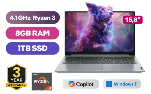 Lenovo IdeaPad 1 15AMN7 82VG00FCFU AMD Ryzen 3 7320U up to 4.1GHz Processor with AMD Max Boost Clock Technology, 4MB Cache, 4x Cores, 8x Threads / 8GB LPDDR5 RAM / 1TB Ultra-Fast NVME SSD / 15.6" HD (1366x768) Anti-glare Display / Integrated AMD Radeon 610M Graphics / No DVD Drive Included / Windows 11 Home (64bit) / HD 720p with Privacy Shutter Microphone / Bluetooth 5.1 / Wi-Fi 6 802.11ax Wireless LAN / Headphone Audio & Microphone Combo Jack / 2x USB Type-A / 1x USB Type-C / 1x HDMI / 1x SD Card Reader / 2x 1.5W Speaker With Dolby Audio / Non-Backlit Keyboard /Lenovo IdeaPad 1 15AMN7 Ryzen 3 LaptopLenovo IdeaPad 1 15AMN7 82VG00FCFU AMD Ryzen 3 7320U up to 4.1GHz Processor with AMD Max Boost Clock Technology, 4MB Cache, 4x Cores, 8x Threads / 8GB LPDDR5 RAM / 1TB Ultra-Fast NVME SSD / 15.6" HD (1366x768) Anti-glare Display / Integrated AMD Radeon 610M Graphics / No DVD Drive Included / Windows 11 Home (64bit) / HD 720p with Privacy Shutter Microphone / Bluetooth 5.1 / Wi-Fi 6 802.11ax Wireless LAN / Headphone Audio & Microphone Combo Jack / 2x USB Type-A / 1x USB Type-C / 1x HDMI / 1x SD Card Reader / 2x 1.5W Speaker With Dolby Audio / Non-Backlit Keyboard /Lenovo IdeaPad 1 15AMN7 Ryzen 3 Laptop [82VG00FCFU/1TB] / 3 YEARS WARRANTY + FREE DELIVERY !