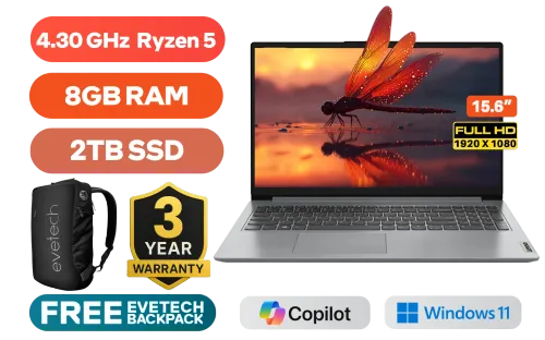 LENOVO IDEAPAD 1 15AMN7 AMD Ryzen 5 7520U up to 4.30GHz Processor, 6MB Cache, 4x Cores, 8x Threads / 8GB LPDDR5 RAM / 2TB Ultra-Fast NVME SSD / 15.6" FHD (1920x1080) Anti-glare Display / Integrated AMD Radeon Graphics / Windows 11 Home / WiFi 6 Wireless LAN / Bluetooth 5.2 / HD 720p Web Camera with Privacy Shutter / 2x USB Type-A / 1x USB Type-C / 1x HDMI / 1x Headphone & microphone combo jack / 1x SD Card reader / Non-backlit English Keyboard / Stereo Speakers with Dolby Audio / Lenovo IdeaPad 1 15AMN7 AMD Ryzen 5 Laptop DealLENOVO IDEAPAD 1 15AMN7 AMD Ryzen 5 7520U up to 4.30GHz Processor, 6MB Cache, 4x Cores, 8x Threads / 8GB LPDDR5 RAM / 2TB Ultra-Fast NVME SSD / 15.6" FHD (1920x1080) Anti-glare Display / Integrated AMD Radeon Graphics / Windows 11 Home / WiFi 6 Wireless LAN / Bluetooth 5.2 / HD 720p Web Camera with Privacy Shutter / 2x USB Type-A / 1x USB Type-C / 1x HDMI / 1x Headphone & microphone combo jack / 1x SD Card reader / Non-backlit English Keyboard / Stereo Speakers with Dolby Audio / Lenovo IdeaPad 1 15AMN7 AMD Ryzen 5 Laptop Deal [82VG00X2SA/2TB] / 3 YEARS WARRANTY / [+] GET FREE EVETECH DASH Premium Gaming Backpack+ FREE DELIVERY !