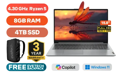 LENOVO IDEAPAD 1 15AMN7 AMD Ryzen 5 7520U up to 4.30GHz Processor, 6MB Cache, 4x Cores, 8x Threads / 8GB LPDDR5 RAM / 4TB Ultra-Fast NVME SSD / 15.6" FHD (1920x1080) Anti-glare Display / Integrated AMD Radeon Graphics / Windows 11 Home / WiFi 6 Wireless LAN / Bluetooth 5.2 / HD 720p Web Camera with Privacy Shutter / 2x USB Type-A / 1x USB Type-C / 1x HDMI / 1x Headphone & microphone combo jack / 1x SD Card reader / Non-backlit English Keyboard / Stereo Speakers with Dolby Audio / Lenovo IdeaPad 1 15AMN7 AMD Ryzen 5 Laptop DealLENOVO IDEAPAD 1 15AMN7 AMD Ryzen 5 7520U up to 4.30GHz Processor, 6MB Cache, 4x Cores, 8x Threads / 8GB LPDDR5 RAM / 4TB Ultra-Fast NVME SSD / 15.6" FHD (1920x1080) Anti-glare Display / Integrated AMD Radeon Graphics / Windows 11 Home / WiFi 6 Wireless LAN / Bluetooth 5.2 / HD 720p Web Camera with Privacy Shutter / 2x USB Type-A / 1x USB Type-C / 1x HDMI / 1x Headphone & microphone combo jack / 1x SD Card reader / Non-backlit English Keyboard / Stereo Speakers with Dolby Audio / Lenovo IdeaPad 1 15AMN7 AMD Ryzen 5 Laptop Deal [82VG00X2SA/4TB] / 3 YEARS WARRANTY / [+] GET FREE EVETECH DASH Premium Gaming Backpack+ FREE DELIVERY !