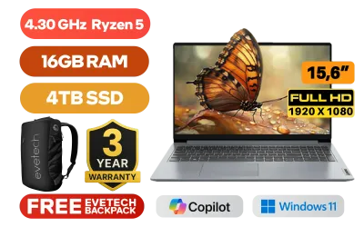 Lenovo IdeaPad 1 15AMN7 AMD Ryzen 5 7520U up to 4.30GHz Processor, 6MB Cache, 4x Cores, 8x Threads / 16GB DDR5 RAM / 4TB Ultra-Fast NVME SSD / 15.6" HD 1920x1080 Anti-Glare Display / Integrated AMD Radeon Graphics / Windows 11 Home (64bit) / HD 720p / Realtek Dual-Band Wi-Fi 6 Wireless LAN / Bluetooth 5.2 / 2x USB Type-A / 1x USB Type-C / 1x HDMI / 1x Headphone Audio & Microphone Combo Jack / 1x SD Card Reader / 2x 1.5W Speaker With Dolby Audio / Non-Backlit Keyboard / Lenovo IdeaPad 1 15IAU7 Ryzen 5 Laptop DealLenovo IdeaPad 1 15AMN7 AMD Ryzen 5 7520U up to 4.30GHz Processor, 6MB Cache, 4x Cores, 8x Threads / 16GB DDR5 RAM / 4TB Ultra-Fast NVME SSD / 15.6" HD 1920x1080 Anti-Glare Display / Integrated AMD Radeon Graphics / Windows 11 Home (64bit) / HD 720p / Realtek Dual-Band Wi-Fi 6 Wireless LAN / Bluetooth 5.2 / 2x USB Type-A / 1x USB Type-C / 1x HDMI / 1x Headphone Audio & Microphone Combo Jack / 1x SD Card Reader / 2x 1.5W Speaker With Dolby Audio / Non-Backlit Keyboard / Lenovo IdeaPad 1 15IAU7 Ryzen 5 Laptop Deal [82VG00SWFU/4TB] / 3 YEARS WARRANTY / [+] GET FREE EVETECH NEO Premium Gaming Backpack+ FREE DELIVERY !