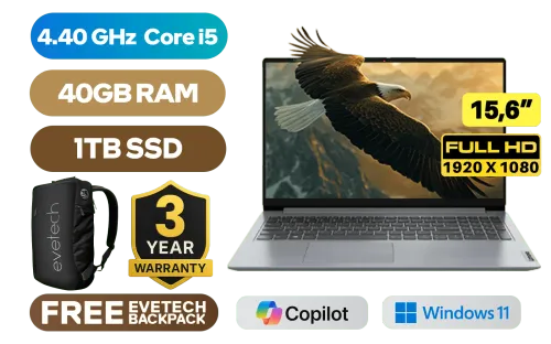 Lenovo IdeaPad 1 15IAU7 12th Gen Intel Core i5-1235U up to 4.40GHz Processor, 12MB Cache, 10x Cores, 12x Threads / 40GB DDR4 RAM / 1TB Ultra-Fast NVME SSD / 15.6" FHD 1920 x 1080 Anti-Glare Display / Integrated Intel UHD Graphics / No DVD Drive Included / Windows 11 Home (64bit) / HD 720p with Privacy Shutter / Bluetooth 5.1 / Intel AC 9560 Wireless LAN/ 2x USB Type-A / 1x USB Type-C / 1x HDMI / 1x SD Card Reader / 1x Headphone Audio & Microphone Combo Jack / Non-Backlit Keyboard / 2x 1.5W Speaker With Dolby Audio / Lenovo IdeaPad 1 15IAU7 Core i5 Laptop DealLenovo IdeaPad 1 15IAU7 12th Gen Intel Core i5-1235U up to 4.40GHz Processor, 12MB Cache, 10x Cores, 12x Threads / 40GB DDR4 RAM / 1TB Ultra-Fast NVME SSD / 15.6" FHD 1920 x 1080 Anti-Glare Display / Integrated Intel UHD Graphics / No DVD Drive Included / Windows 11 Home (64bit) / HD 720p with Privacy Shutter / Bluetooth 5.1 / Intel AC 9560 Wireless LAN/ 2x USB Type-A / 1x USB Type-C / 1x HDMI / 1x SD Card Reader / 1x Headphone Audio & Microphone Combo Jack / Non-Backlit Keyboard / 2x 1.5W Speaker With Dolby Audio / Lenovo IdeaPad 1 15IAU7 Core i5 Laptop Deal [82QD00BFFU/40GB/1TB] / 3 YEARS WARRANTY / [+] GET FREE EVETECH NEO Premium Gaming Backpack+ FREE DELIVERY !
