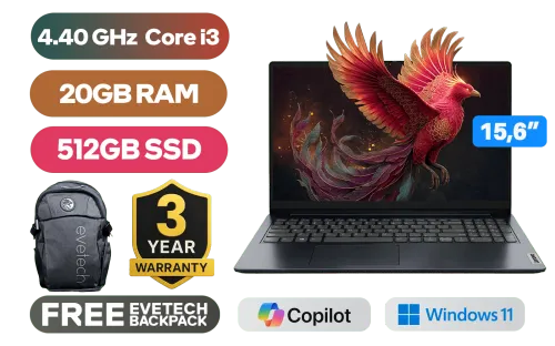 Lenovo IdeaPad 1 15IAU7 82QD0094FU 12th Gen Intel Core i3-1215U up to 4.40GHz Processor, 10MB Cache, 6x Cores, 8x Threads / 20GB DDR4 RAM / 512GB Ultra-Fast NVME SSD / 15.6" HD 1366x768 Anti-Glare Display / Integrated Intel UHD Graphics / No DVD Drive Included / Windows 11 Home (64bit) / HD 720p with Privacy Shutter Microphone / Bluetooth 5.0 / Dual Band 802.11ac Wireless LAN / 2x 1.5W Speaker With Dolby Audio / Headphone Audio & Microphone Combo Jack / 1x USB 2.0 / 1x USB Type-A / 1x USB Type-C / 1x HDMI / 1x SD Card Reader / Non-Backlit Keyboard / Lenovo IdeaPad 1 15IAU7 Core i3 Laptop DealLenovo IdeaPad 1 15IAU7 82QD0094FU 12th Gen Intel Core i3-1215U up to 4.40GHz Processor, 10MB Cache, 6x Cores, 8x Threads / 20GB DDR4 RAM / 512GB Ultra-Fast NVME SSD / 15.6" HD 1366x768 Anti-Glare Display / Integrated Intel UHD Graphics / No DVD Drive Included / Windows 11 Home (64bit) / HD 720p with Privacy Shutter Microphone / Bluetooth 5.0 / Dual Band 802.11ac Wireless LAN / 2x 1.5W Speaker With Dolby Audio / Headphone Audio & Microphone Combo Jack / 1x USB 2.0 / 1x USB Type-A / 1x USB Type-C / 1x HDMI / 1x SD Card Reader / Non-Backlit Keyboard / Lenovo IdeaPad 1 15IAU7 Core i3 Laptop Deal [82QD0094FU/20GB/512GB] / [+] GET FREE EVETECH FLUX Premium Gaming Backpack / 3 YEARS WARRANTY / [+] GET FREE Logitech M185 Wireless Mouse+ FREE DELIVERY !