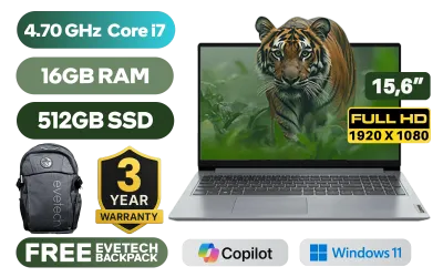 Lenovo IdeaPad 1 15IAU7 12th Gen Intel Alder Lake Core i7-1255U up to 4.70GHz Processor, 12MB Cache, 10x Cores, 12x Threads / 16GB DDR4 RAM / 512GB Ultra-Fast NVME SSD / 15.6" FHD 1920 x 1080 Anti-Glare Display / Integrated Intel UHD Graphics / No DVD Drive Included / Windows 11 Home (64bit) / HD 720p with Privacy Shutter Microphone / Bluetooth 5.0 / Intel AC 9560 Wireless LAN / 2x 1.5W Speaker With Dolby Audio / Headphone Audio & Microphone Combo Jack / 1x USB 2.0 / 1x USB Type-A / 1x USB Type-C / 1x HDMI / 1x SD Card Reader / Non-Backlit Keyboard / Lenovo IdeaPad 1 15IAU7 Core i7 Laptop DealLenovo IdeaPad 1 15IAU7 12th Gen Intel Alder Lake Core i7-1255U up to 4.70GHz Processor, 12MB Cache, 10x Cores, 12x Threads / 16GB DDR4 RAM / 512GB Ultra-Fast NVME SSD / 15.6" FHD 1920 x 1080 Anti-Glare Display / Integrated Intel UHD Graphics / No DVD Drive Included / Windows 11 Home (64bit) / HD 720p with Privacy Shutter Microphone / Bluetooth 5.0 / Intel AC 9560 Wireless LAN / 2x 1.5W Speaker With Dolby Audio / Headphone Audio & Microphone Combo Jack / 1x USB 2.0 / 1x USB Type-A / 1x USB Type-C / 1x HDMI / 1x SD Card Reader / Non-Backlit Keyboard / Lenovo IdeaPad 1 15IAU7 Core i7 Laptop Deal [82QD00E0FU/16GB] / 3 YEARS WARRANTY / 3 YEARS WARRANTY / [+] GET FREE EVETECH FLUX Premium Gaming Backpack / [+] GET FREE Promate Samit Wireless Mouse+ FREE DELIVERY !