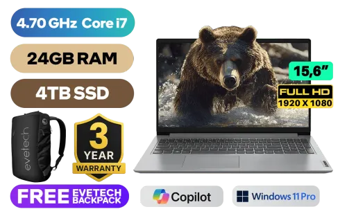 Lenovo IdeaPad 1 15IAU7 12th Gen Intel Alder Lake Core i7-1255U up to 4.70GHz Processor, 12MB Cache, 10x Cores, 12x Threads / 24GB DDR4 RAM / 4TB Ultra-Fast NVME SSD / 15.6" FHD 1920x1080 Anti-Glare Display / Integrated Intel UHD Graphics / No DVD Drive Included / <span style="font-size: 20px; color: #00BFFF; font-weight: bold;">Windows 11 Professional (64bit)</span> / HD 720p with Privacy Shutter Microphone / Bluetooth 5.1 / Realtek 8822CE 802.11ac Wireless LAN / 2x USB Type-A / 1x USB Type-C / 1x HDMI / 1x SD Card Reader / Headphone Audio & Microphone Combo Jack / 2x 1.5W Speaker With Dolby Audio / Non-Backlit Keyboard / Supports battery Quick charge: approximately 80% in 1 Hour / Lenovo IdeaPad 1 15IAU7 Core i7 Laptop DealLenovo IdeaPad 1 15IAU7 12th Gen Intel Alder Lake Core i7-1255U up to 4.70GHz Processor, 12MB Cache, 10x Cores, 12x Threads / 24GB DDR4 RAM / 4TB Ultra-Fast NVME SSD / 15.6" FHD 1920x1080 Anti-Glare Display / Integrated Intel UHD Graphics / No DVD Drive Included / Windows 11 Professional (64bit) / HD 720p with Privacy Shutter Microphone / Bluetooth 5.1 / Realtek 8822CE 802.11ac Wireless LAN / 2x USB Type-A / 1x USB Type-C / 1x HDMI / 1x SD Card Reader / Headphone Audio & Microphone Combo Jack / 2x 1.5W Speaker With Dolby Audio / Non-Backlit Keyboard / Supports battery Quick charge: approximately 80% in 1 Hour / Lenovo IdeaPad 1 15IAU7 Core i7 Laptop Deal [82QD00EPFU/24GB/4TB] / 3 YEARS WARRANTY / [+] GET FREE EVETECH NEO Premium Gaming Backpack+ FREE DELIVERY !