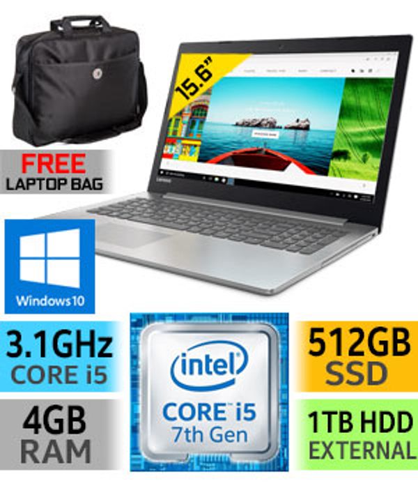 Lenovo Ideapad 320 Intel 7th Gen Kabylake Core i5-7200U up to 3.10GHz CPU / 4GB DDR4 RAM / 512GB Ultra-Fast SSD + 1TB External HDD / 15.6" FHD 1920 x 1080 Anti-Glare Screen / Intel HD Graphics 620 / 802.11 ac Wireless LAN / Bluetooth 4.1 / 720p HD Camera / DVD Writer / Windows 10 Home (64bit) / 1 Year Carry-in Warranty / FREE Notebook Carry Bag / Core i5 Laptop Deal