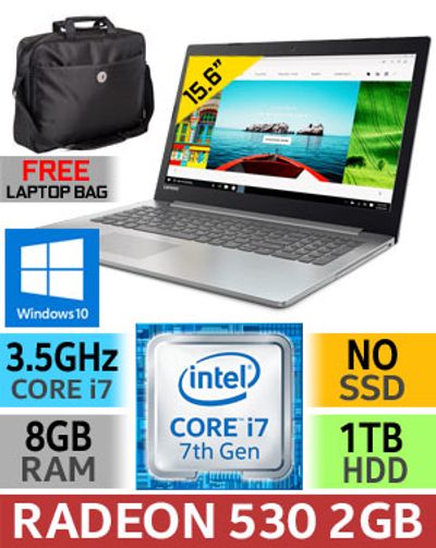 Lenovo Ideapad 320-15IKB Intel 7th Gen Kabylake Core i7-7500U up to 3.50GHz Processor / 8GB DDR4 RAM / 1TB Hard Drive / 15.6" FHD 1920 x 1080 Anti-Glare Screen / AMD Radeon 530 2GB GDDR5 Dedicated Graphics / 802.11 ac Wireless LAN / Bluetooth 4.1 / 720p HD Camera / DVD Writer / Windows 10 Home (64bit) / Dolby Audio / USB Type-C / HDMI / 1 Year Lenovo Warranty / FREE Notebook Carry Bag / Core i7 Laptop Deal