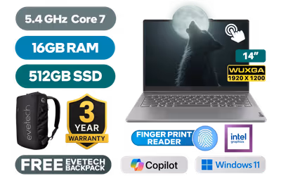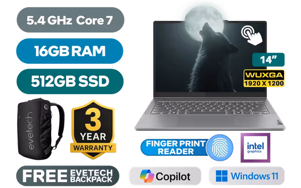 [TOUCHSCREEN] Lenovo IdeaPad 5 2-in-1 14IRH9 Intel® Core™ 7-150U up to 5.4GHz Processor, 12MB Cache, 10x Cores, 12x Threads / 16GB LPDDR5X RAM / 512GB Ultra-Fast NVME SSD / 14" WUXGA (1920 x 1200) IPS-Level Touchscreen Display / Integrated Intel Graphics / Windows 11 Home (64bit) / 1080p FHD Camera with Privacy Shutter / Bluetooth 5.3 / Intel Wi-Fi 6 AX211 Wireless LAN / Fingerprint Reader / 2x 2W Speaker With Dolby Audio / Headphone Audio & Microphone Combo Jack / 2x USB Type-A / 2x USB Type-C / 1x HDMI / 1x microSD Card Reader / White Backlit keyboard / Lenovo® Digital Pen 2 / Lenovo IdeaPad 5 2-in-1 14IRH9 Core 7 Touchscreen Laptop Deal[TOUCHSCREEN] Lenovo IdeaPad 5 2-in-1 14IRH9 Intel® Core™ 7-150U up to 5.4GHz Processor, 12MB Cache, 10x Cores, 12x Threads / 16GB LPDDR5X RAM / 512GB Ultra-Fast NVME SSD / 14" WUXGA (1920 x 1200) IPS-Level Touchscreen Display / Integrated Intel Graphics / Windows 11 Home (64bit) / 1080p FHD Camera with Privacy Shutter / Bluetooth 5.3 / Intel Wi-Fi 6 AX211 Wireless LAN / Fingerprint Reader / 2x 2W Speaker With Dolby Audio / Headphone Audio & Microphone Combo Jack / 2x USB Type-A / 2x USB Type-C / 1x HDMI / 1x microSD Card Reader / White Backlit keyboard / Lenovo® Digital Pen 2 / Lenovo IdeaPad 5 2-in-1 14IRH9 Core 7 Touchscreen Laptop Deal [83DT0050SA] / [+] GET FREE EVETECH NEO Premium Gaming Backpack / 3 YEARS WARRANTY + FREE DELIVERY !