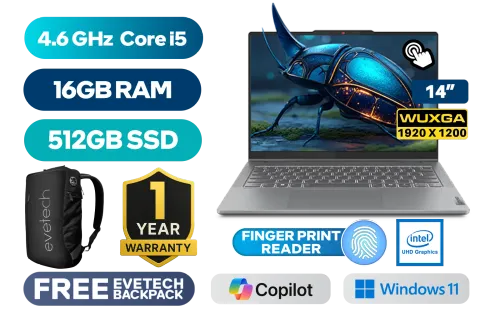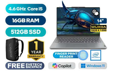 [TOUCHSCREEN] Lenovo IdeaPad 5 2-in-1 14IRH9 Intel® Core™ i5-13420H up to 4.6GHz Processor, 12MB Cache, 8x Cores, 12x Threads / 16GB LPDDR5X RAM / 512GB Ultra-Fast NVME SSD / 14" WUXGA (1920 x 1200) IPS-Level With TouchScreen Display / Integrated Intel UHD Graphics / Windows 11 Home (64bit) / 1080p FHD Camera with Privacy Shutter / Bluetooth 5.2 / Realtek 8852BE WiFi 6 802.11ax Wireless LAN / Fingerprint Reader / 2x 2W Speaker With Dolby Audio / 2x USB Type-A / 2x USB Type-C / 1x HDMI / Headphone Audio & Microphone Combo Jack / 1x MicroSD Card Reader / White Backlit keyboard / Lenovo® Digital Pen 2 / 1 Year Warranty / Lenovo IdeaPad 5 2-in-1 14IRH9 Core i5 Touchscreen Laptop Deal[TOUCHSCREEN] Lenovo IdeaPad 5 2-in-1 14IRH9 Intel® Core™ i5-13420H up to 4.6GHz Processor, 12MB Cache, 8x Cores, 12x Threads / 16GB LPDDR5X RAM / 512GB Ultra-Fast NVME SSD / 14" WUXGA (1920 x 1200) IPS-Level With TouchScreen Display / Integrated Intel UHD Graphics / Windows 11 Home (64bit) / 1080p FHD Camera with Privacy Shutter / Bluetooth 5.2 / Realtek 8852BE WiFi 6 802.11ax Wireless LAN / Fingerprint Reader / 2x 2W Speaker With Dolby Audio / 2x USB Type-A / 2x USB Type-C / 1x HDMI / Headphone Audio & Microphone Combo Jack / 1x MicroSD Card Reader / White Backlit keyboard / Lenovo® Digital Pen 2 / 1 Year Warranty / Lenovo IdeaPad 5 2-in-1 14IRH9 Core i5 Touchscreen Laptop Deal [83KX004NSA] / [+] GET FREE EVETECH NEO Premium Gaming Backpack+ FREE DELIVERY !