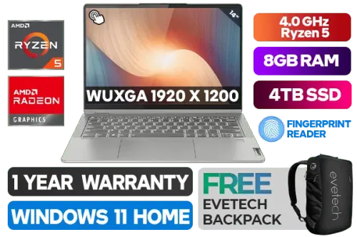 [TOUCHSCREEN] Lenovo IdeaPad Flex 5 14ALC7 AMD Ryzen 5 5500U Up to 4.0GHz Processor, 11MB Cache, 6x Cores, 12x Threads / 8GB LPDDR4X RAM / 4TB Ultra-Fast NVME SSD / 14" WUXGA (1920x1200) Touchscreen Display / AMD Radeon Integrated Graphics / Windows 11 Home (64bit) / 1080P FHD Camera with Privacy Shutter / Realtek RTL8852BE Wi-Fi 6 Wireless LAN / Bluetooth 5.3 / Fingerprint Reader / 2x 2W Speaker With Dolby Audio / 1x Headphone Audio & Microphone Combo Jack / 2x USB Type-A / 1x USB Type-C / 1x HDMI 1.4b / 1x SD card reader / White Backlit keyboard / Free Lenovo Digital Pen / 1 Year Warranty / Lenovo IdeaPad Flex 5 14ALC7 Ryzen 5 Touchscreen Laptop Deal[TOUCHSCREEN] Lenovo IdeaPad Flex 5 14ALC7 AMD Ryzen 5 5500U Up to 4.0GHz Processor, 11MB Cache, 6x Cores, 12x Threads / 8GB LPDDR4X RAM / 4TB Ultra-Fast NVME SSD / 14" WUXGA (1920x1200) Touchscreen Display / AMD Radeon Integrated Graphics / Windows 11 Home (64bit) / 1080P FHD Camera with Privacy Shutter / Realtek RTL8852BE Wi-Fi 6 Wireless LAN / Bluetooth 5.3 / Fingerprint Reader / 2x 2W Speaker With Dolby Audio / 1x Headphone Audio & Microphone Combo Jack / 2x USB Type-A / 1x USB Type-C / 1x HDMI 1.4b / 1x SD card reader / White Backlit keyboard / Free Lenovo Digital Pen / 1 Year Warranty / Lenovo IdeaPad Flex 5 14ALC7 Ryzen 5 Touchscreen Laptop Deal [82R900EHFU/4TB] / [+] GET FREE EVETECH NEO Premium Gaming Backpack+ FREE DELIVERY !