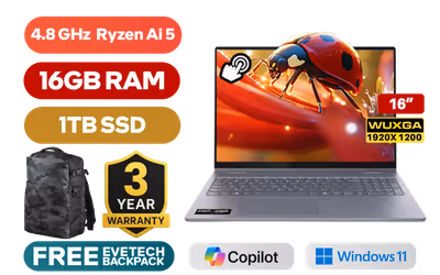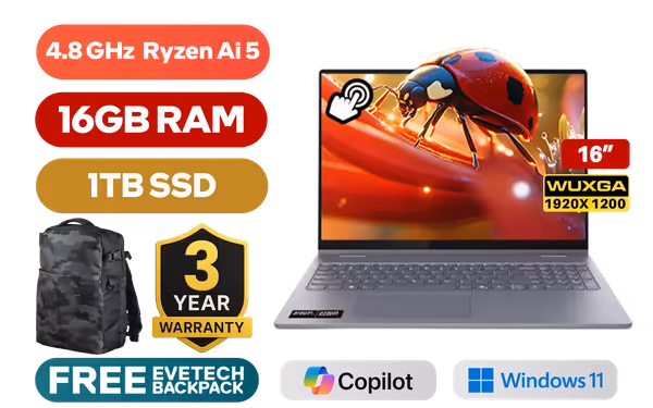 [TOUCHSCREEN] Lenovo IdeaPad Flex 5 2-in-1 16AKP10 AMD Ryzen AI 5-340 up to 4.8GHz Processor, 22MB Cache, 6x Cores, 12x Threads / 16GB LPDDR5X RAM / 1TB Ultra-Fast NVME SSD / 16" WUXGA (1920x1200) IPS-Level Touchscreen Display / Integrated AMD Radeon Graphics / Windows 11 Home (64bit) / MediaTek WiFi 7 MT7925 Wireless LAN / Bluetooth 5.4 / 1080p FHD IR Camera with Privacy Shutter / 2x USB Type-A / 2x USB Type-C (DisplayPort 1.4 / Power Delivery) / 1x HDMI / 1x Micro SD card reader / 1x Headphone & Microphone Combo Jack / White Backlit Keyboard / 2 Stereo Speakers Optimized with Dolby Atmos Audio / Free Lenovo Digital Pen 2 / Lenovo IdeaPad Flex 5 16AKP10 Ryzen AI 5 Touchscreen Laptop Deal[TOUCHSCREEN] Lenovo IdeaPad Flex 5 2-in-1 16AKP10 AMD Ryzen AI 5-340 up to 4.8GHz Processor, 22MB Cache, 6x Cores, 12x Threads / 16GB LPDDR5X RAM / 1TB Ultra-Fast NVME SSD / 16" WUXGA (1920x1200) IPS-Level Touchscreen Display / Integrated AMD Radeon Graphics / Windows 11 Home (64bit) / MediaTek WiFi 7 MT7925 Wireless LAN / Bluetooth 5.4 / 1080p FHD IR Camera with Privacy Shutter / 2x USB Type-A / 2x USB Type-C (DisplayPort 1.4 / Power Delivery) / 1x HDMI / 1x Micro SD card reader / 1x Headphone & Microphone Combo Jack / White Backlit Keyboard / 2 Stereo Speakers Optimized with Dolby Atmos Audio / Free Lenovo Digital Pen 2 / Lenovo IdeaPad Flex 5 16AKP10 Ryzen AI 5 Touchscreen Laptop Deal [83KU0036SA] + FREE DELIVERY !