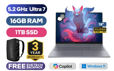 [TOUCHSCREEN] Lenovo IdeaPad Flex 5 2-in-1 16IAL10 Intel Core Ultra 7-255U up to 5.2GHz Processor, 12MB Cache, 12x Cores, 14x Threads / 16GB LPDDR5X RAM / 1TB Ultra-Fast NVME SSD / 16" WUXGA (1920x1200) IPS-Level Touchscreen Display / Integrated Intel Graphics / Windows 11 Home (64bit) / MediaTek WiFi 7 MT7925 Wireless LAN / Bluetooth 5.4 / FHD IR Camera with Privacy Shutter / 2x USB Type-A / 2x USB Type-C (Supports DisplayPort 1.4 / Power Delivery) / 1x HDMI / 1x Mirco SD card reader / 1x Headphone & Microphone Combo Jack / White Backlit Keyboard / 2 Stereo Speakers Optimized with Dolby Atmos Audio / Free Lenovo Digital Pen / Lenovo IdeaPad Flex 5 16IAL10 Core Ultra 7 Laptop Deal[TOUCHSCREEN] Lenovo IdeaPad Flex 5 2-in-1 16IAL10 Intel Core Ultra 7-255U up to 5.2GHz Processor, 12MB Cache, 12x Cores, 14x Threads / 16GB LPDDR5X RAM / 1TB Ultra-Fast NVME SSD / 16" WUXGA (1920x1200) IPS-Level Touchscreen Display / Integrated Intel Graphics / Windows 11 Home (64bit) / MediaTek WiFi 7 MT7925 Wireless LAN / Bluetooth 5.4 / FHD IR Camera with Privacy Shutter / 2x USB Type-A / 2x USB Type-C (Supports DisplayPort 1.4 / Power Delivery) / 1x HDMI / 1x Mirco SD card reader / 1x Headphone & Microphone Combo Jack / White Backlit Keyboard / 2 Stereo Speakers Optimized with Dolby Atmos Audio / Free Lenovo Digital Pen / Lenovo IdeaPad Flex 5 16IAL10 Core Ultra 7 Laptop Deal [83KS003LSA] / [+] GET FREE EVETECH NEO Premium Gaming Backpack / 3 YEARS WARRANTY + FREE DELIVERY !
